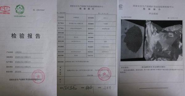 2)CO消除催化劑,室溫下即可催化CO轉化為二氧化碳,性能處于國內領先水平,得到了國家官方機構檢驗合格報告。